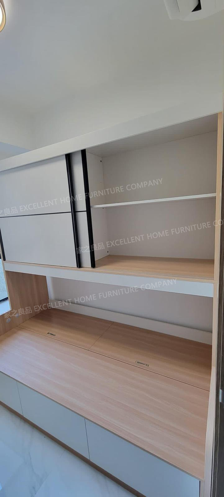 衣櫃組合床SUN760 衣櫃+櫃桶床箱 SUN-YGC+LCB-X920R+SUN-CEB920 尺寸2: 外計:長188*闊94*總高200cm(衣櫃深50cm) 內計:長183*闊92*床面高40cm (可用6呎*3呎床褥) *顏色:白色+淺木紋色(如圖) *衣櫃一邊做掛衣區,一邊做層板區(提工廠配齊配件) 售價:$4780