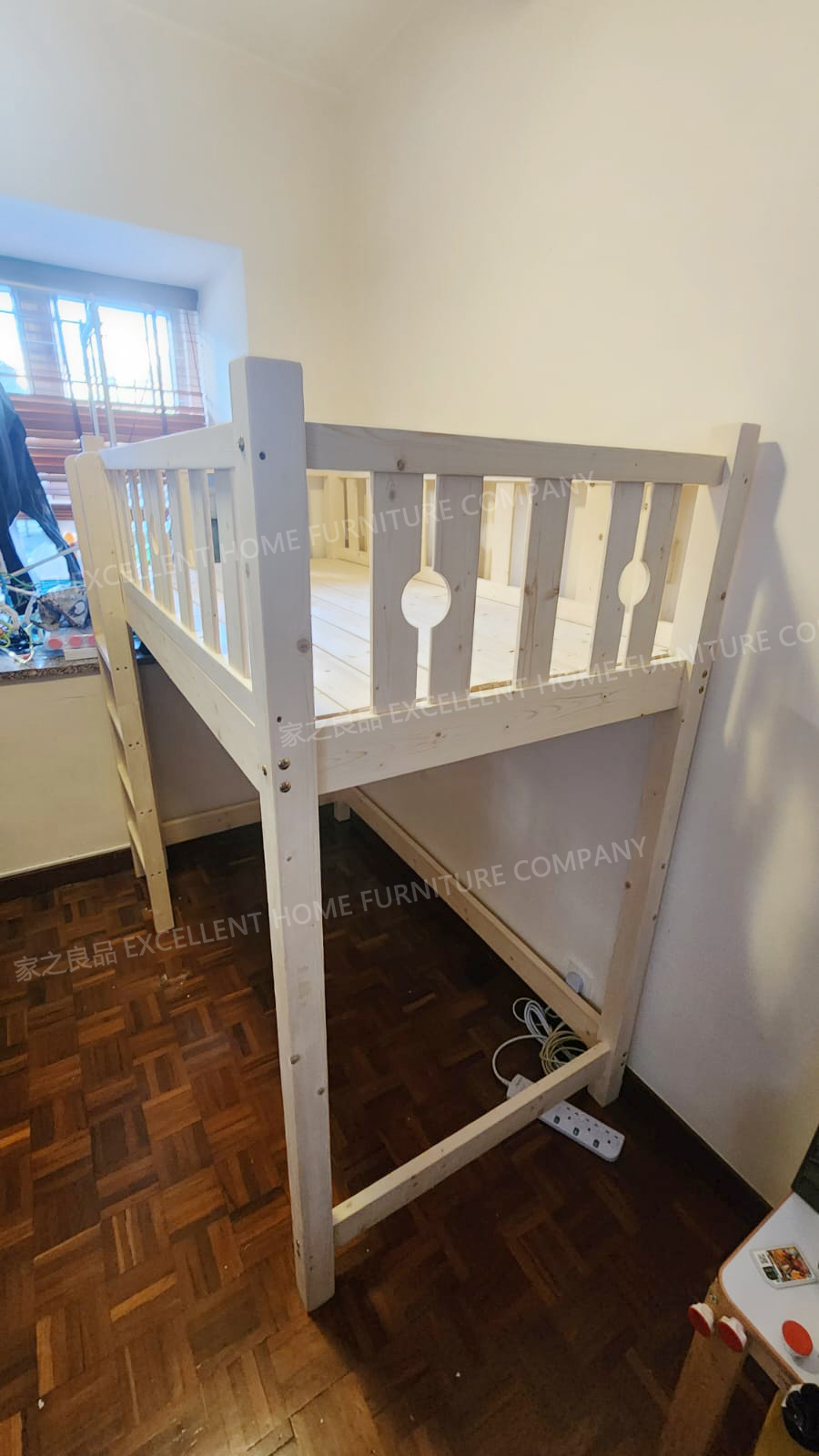 1、實木床架 kswb001 外尺寸:長168*闊88*總高158cm 內尺寸:長156*闊82床底高110cm (內計為床褥尺寸位置) 原木色 直梯在正望床左邊(約突出6-7cm) 價錢:$3050 注:長外計長168cm+預留安裝位置5cm=房間長最少要有171cm(要避開地腳線) 2、海綿床褥mts045 尺寸:長156*闊82*厚6cm 默認白色 中硬款