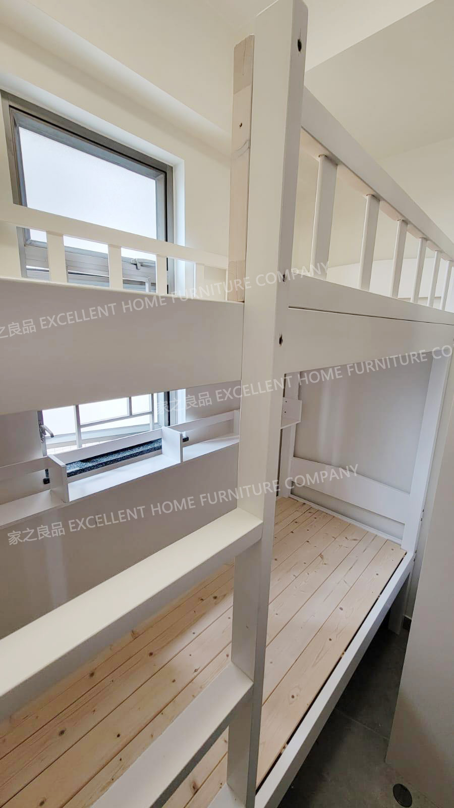 實木雙層床swb019 : 尺寸 外計:長195*闊81*總高190CM 內計:長183*闊76CM(上床) 內計:長183*闊81CM(下床) (可用6呎*2呎半床褥) *梯在正望床左邊(約突出5cm) *下床床下高40cm,床面高50cm 單床架價錢:$2580 *加1個書架:+$200 *見光位上白油:+$800 價錢:$3580