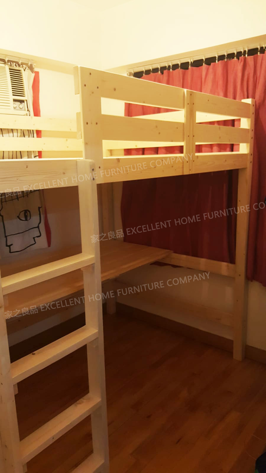 型号:實木高架床swb007 外計:長206*闊143*總高190CM 內計:長192*闊137*床下高145CM (可用6呎3*4呎半床褥) *原木色 *直梯在正望床左邊 *加書枱板:長204*深70*高75cm: +$400 價錢:$3080
