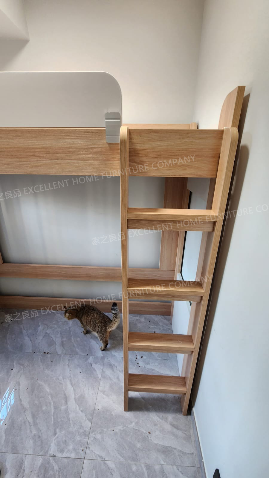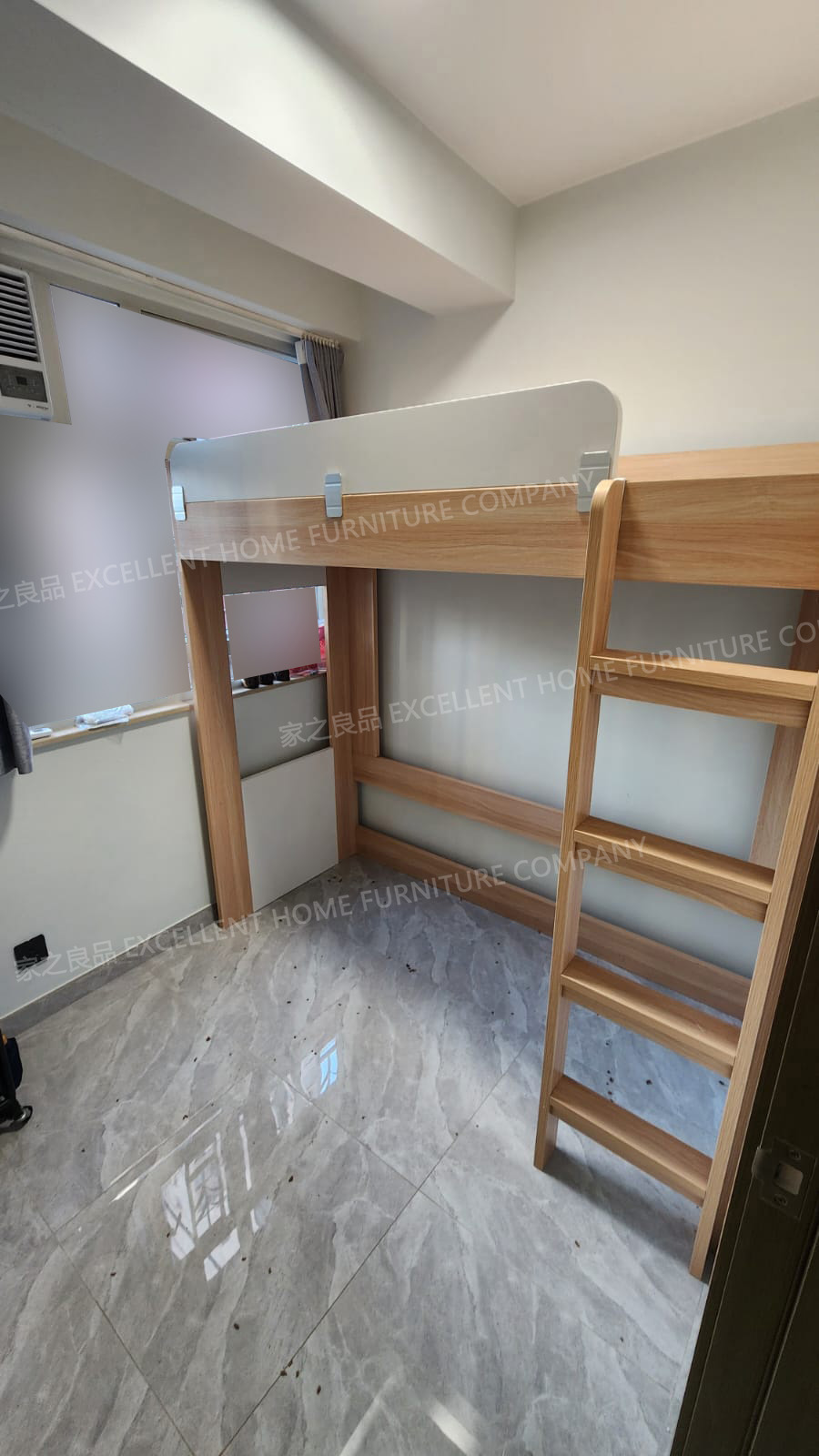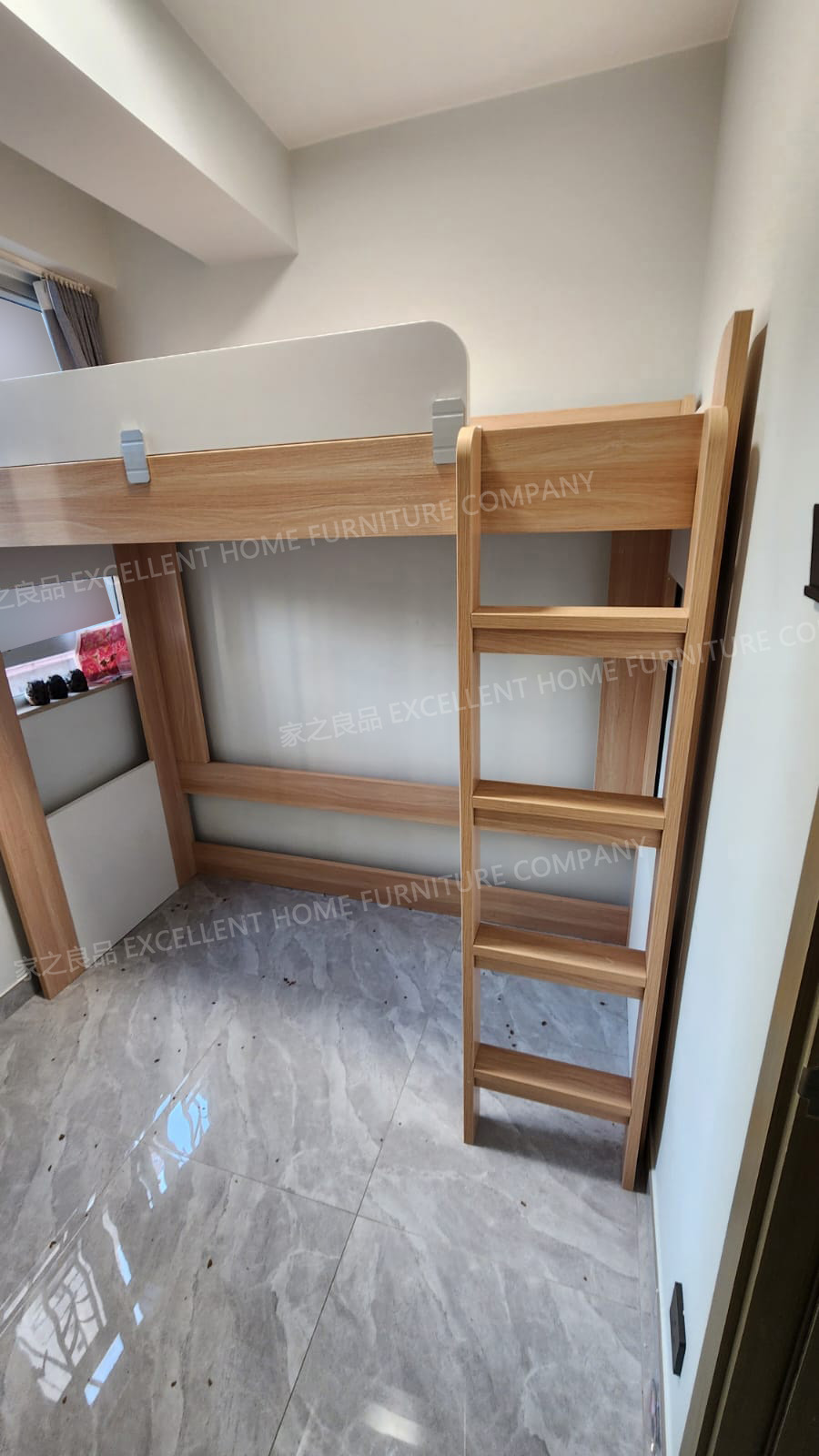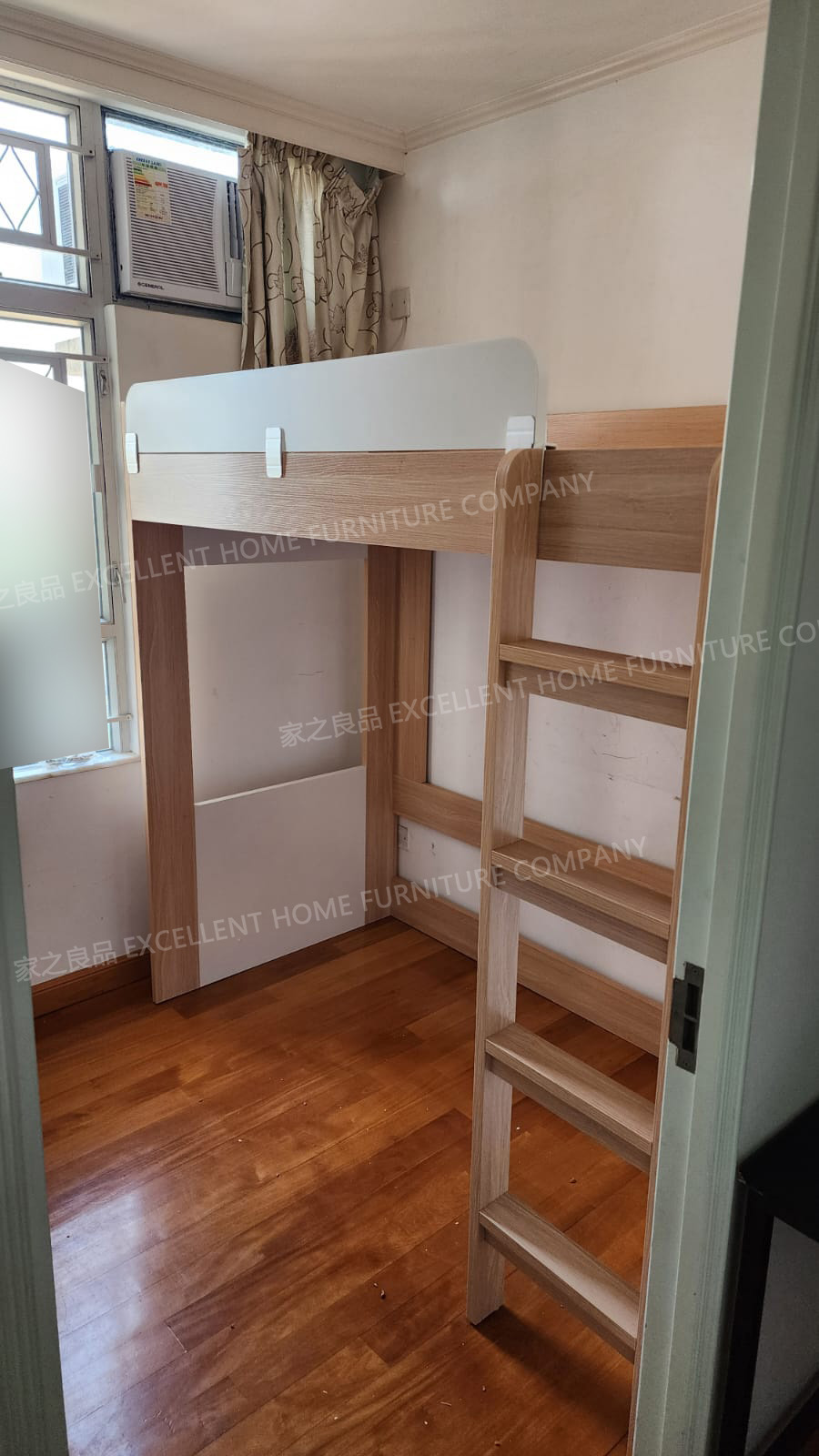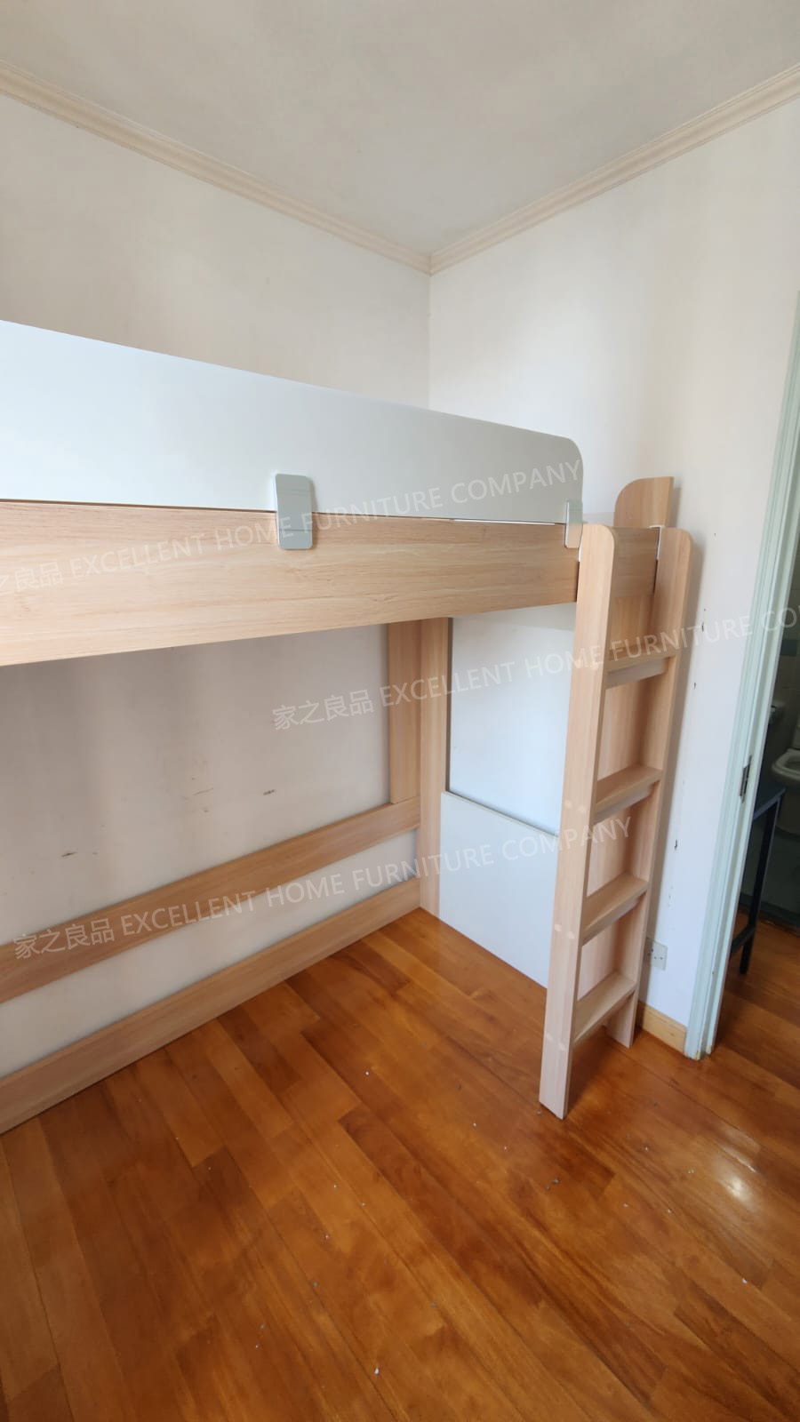 高架床LCB-S970 尺寸: 上床外計:長188*闊97*總高175cm 上床內計:長183*闊92*床下高145cm (可用6呎*3呎床褥) 顏色:白色+淺木紋色 直梯擺正望床左邊(約突出8cm左右,可以左右互換,安裝時決定) 售價:$2480