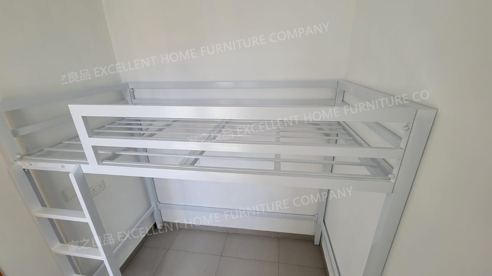 鐵藝高架床 mb005 尺寸2: 外計:長193*闊102*總高175CM 內計:長183*闊92*床下高140CM (可用6呎*3呎床褥) *白色 *直梯在正望床架左邊 價錢:$4480