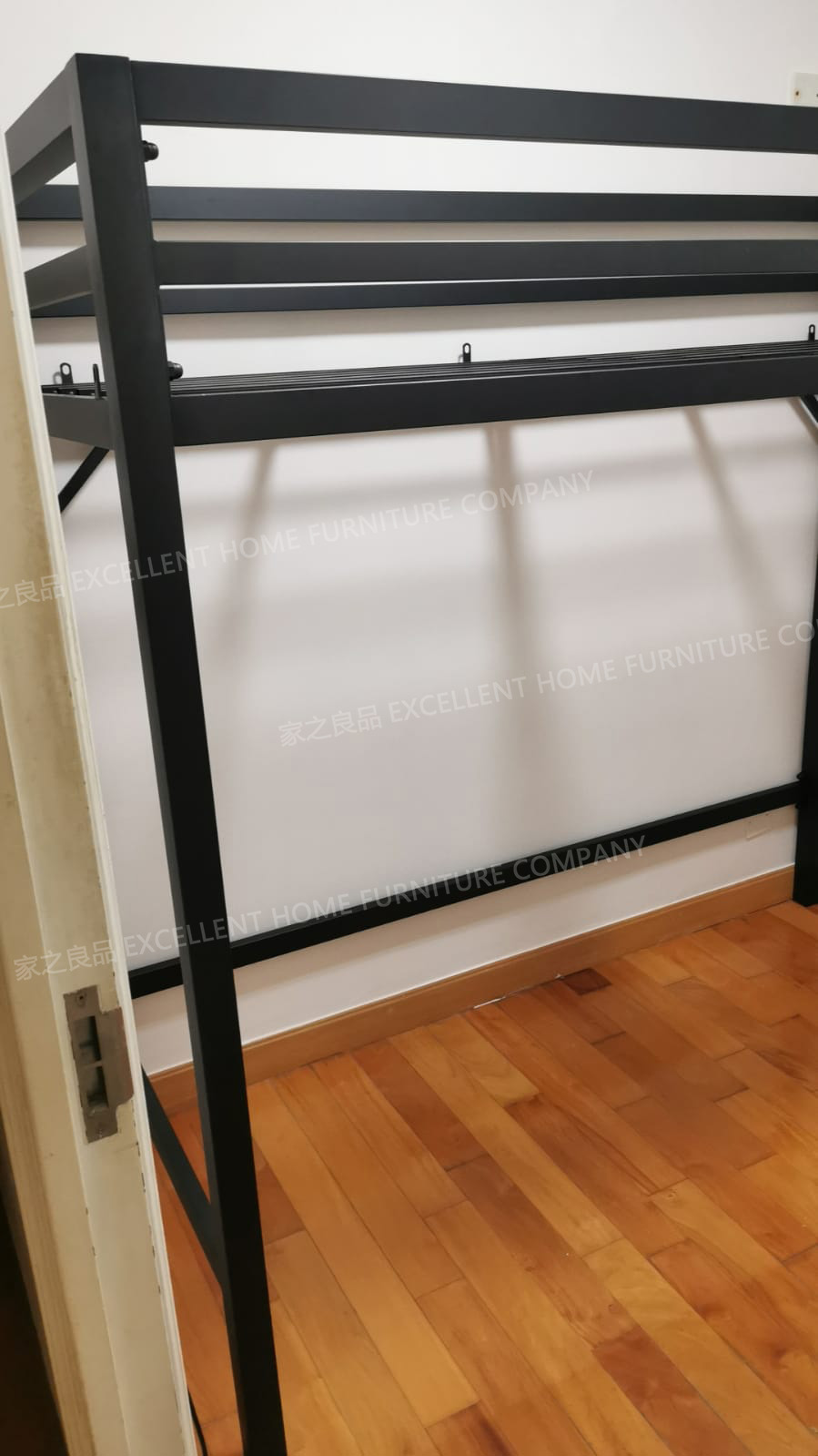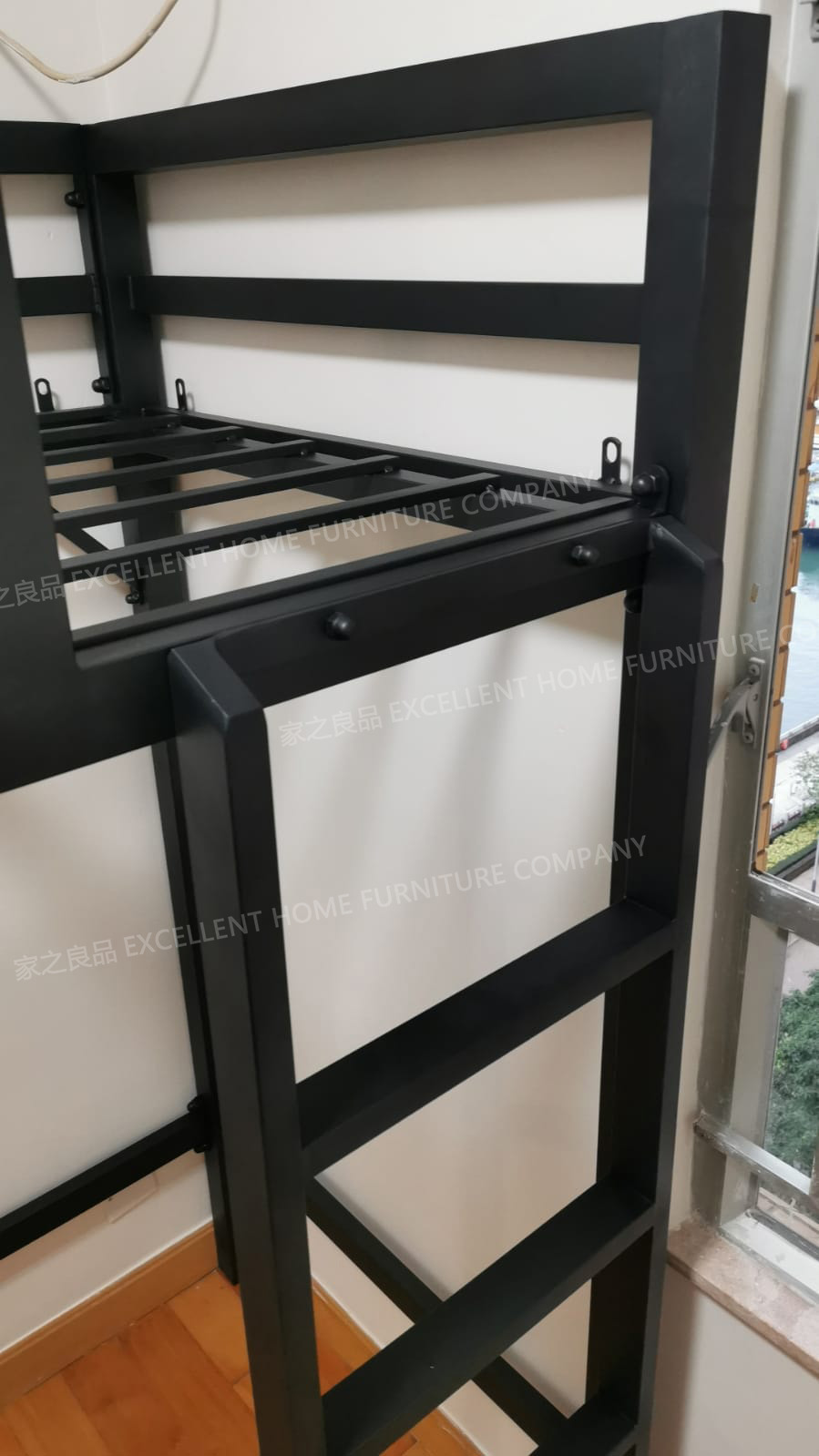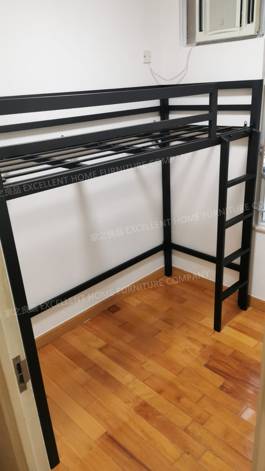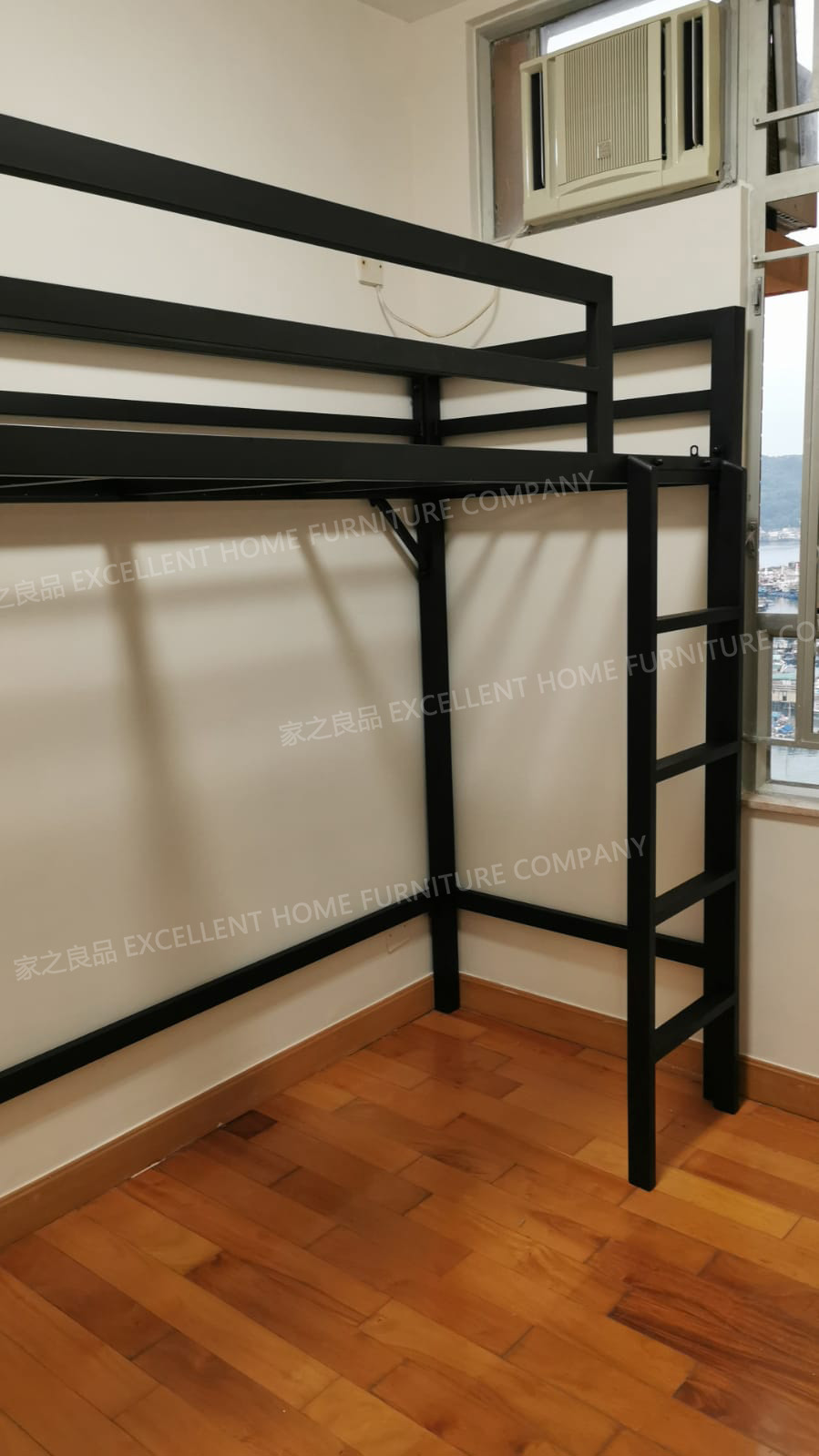 鐵藝高架床 mb005 尺寸: 外計:長193*闊86*總高175CM 內計:長183*闊76*床下高140CM (可用6尺*2呎半床褥) *黑色 *直梯在正望床架右邊 價錢:$4380