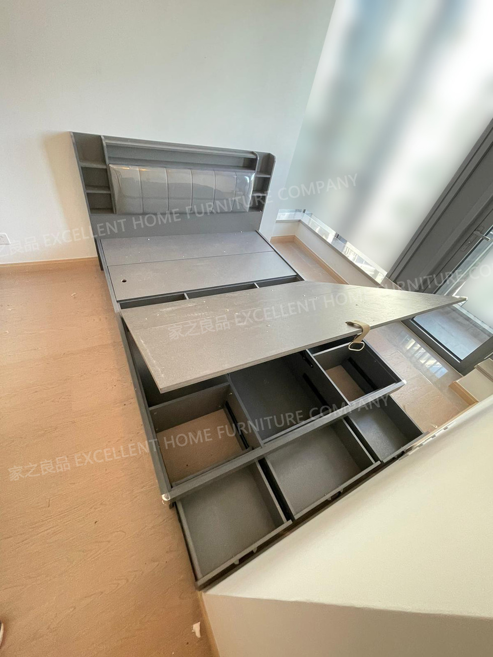 1、儲物床 ysa001 尺寸1: 外計:長217*闊160*高103cm 內計:長200*闊150cm (內計為床褥尺寸位置) *顏色:灰布紋+灰色軟包(圖示) 售價:$2680