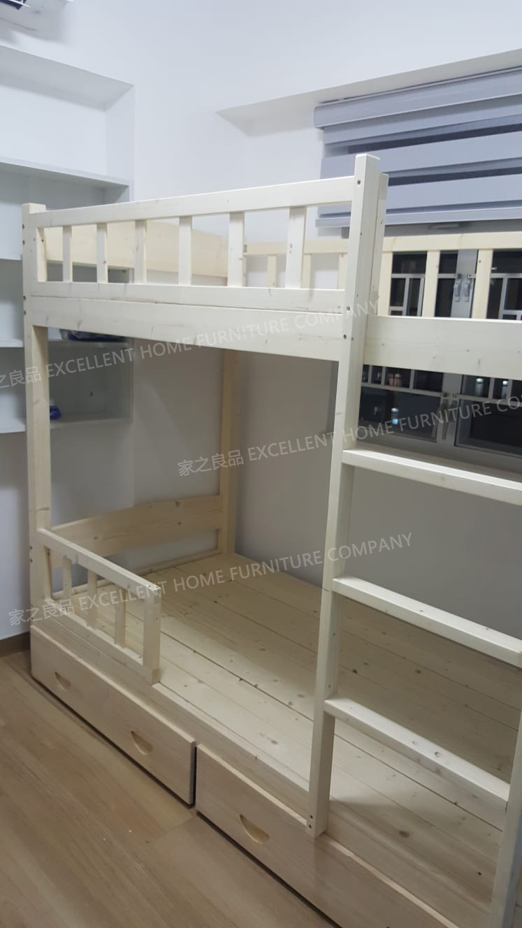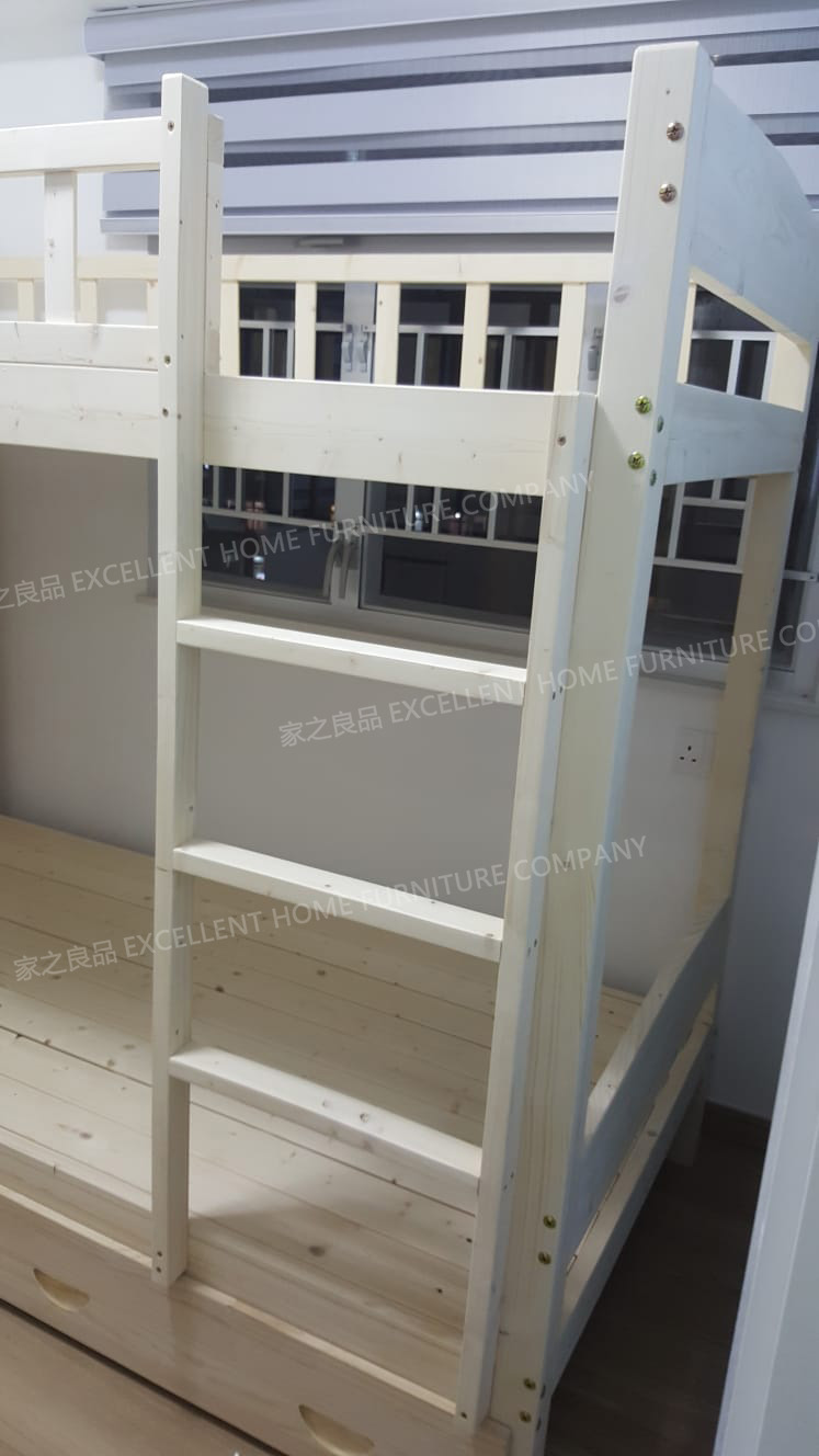 實木雙層床swb019 外計:長195*闊97*總高170CM 內計:長183*闊92CM(上床) 內計:長183*闊94CM(下床) (可用6呎*3呎床褥) *原木色 *梯在正望床右邊 單床架價錢:$2280 *加2个櫃桶:+$300 下層床正望床左邊加一塊護欄(長70高30cm):+$300 總價:$2880 ------------------------------------