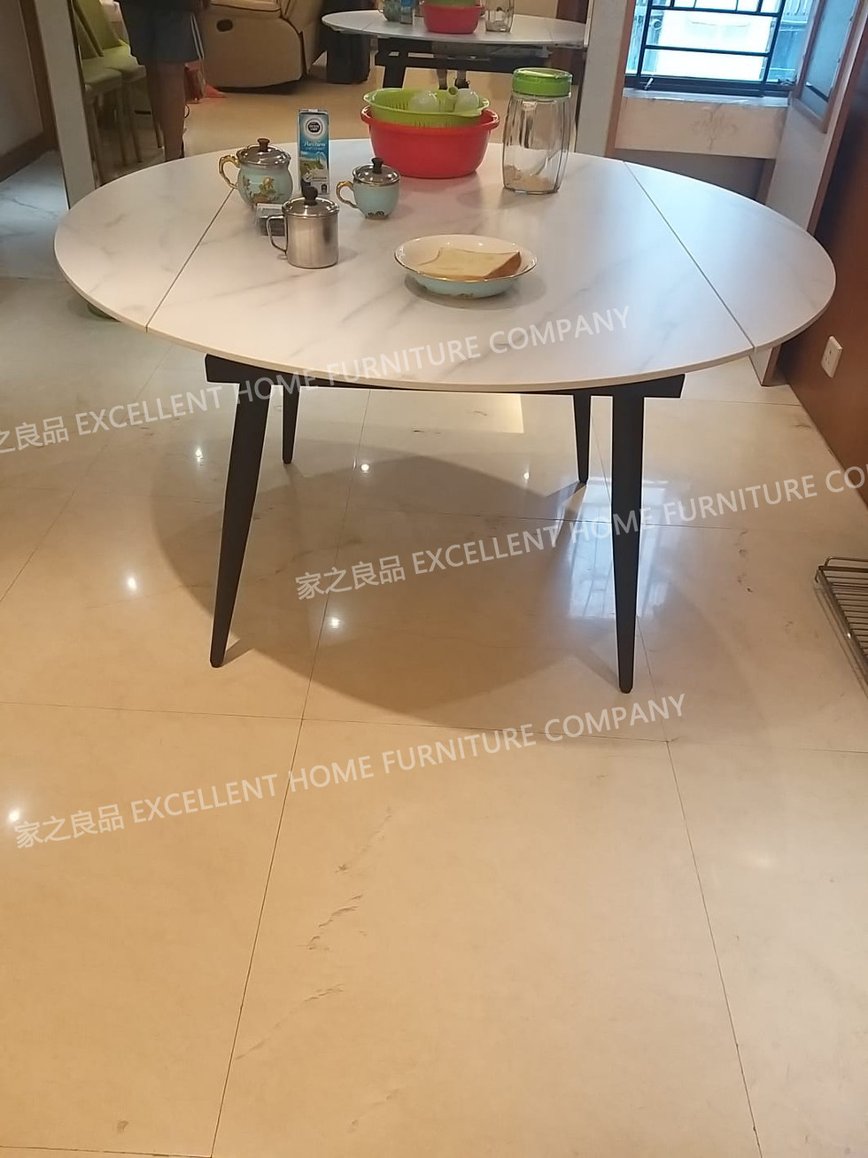 訂單日期:2022-07-18 餐枱dtc014 收縮長枱:闊130*深80*高75cm 變圓枱:直徑130*高75cm *枱面顏色:亞光雪山石 *枱腳顏色:黑色 價錢:$2380