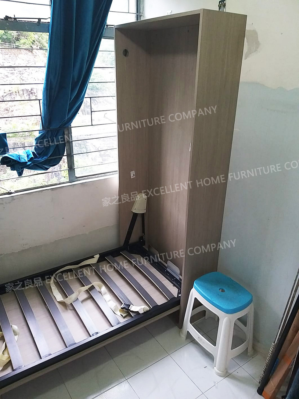 豎翻變形床 trb002 外計:長200*闊89*深31cm 內計:長182*闊77cm *顏色:楓年華 *不要書枱 *改做吊腳架 注: 1:地腳線 高9cm*厚2cm; 2:房間長203cm,有張舊床褥長182*闊77*厚14cm。 價錢:$8180 ------------------------------------