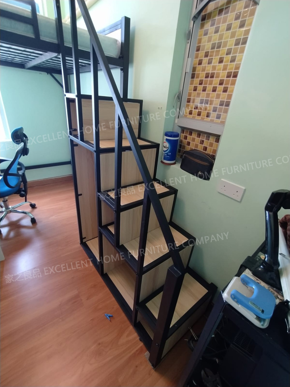 外計:總長193*闊162*總高190CM 內計:長183*闊152*床下高160CM (可用6呎*5呎床褥) *床架:黑色 *腳踏板:08原木色 梯櫃擺正右前方(梯櫃闊55深120*高190cm):+$200 價錢:$7680 ------------------------------------